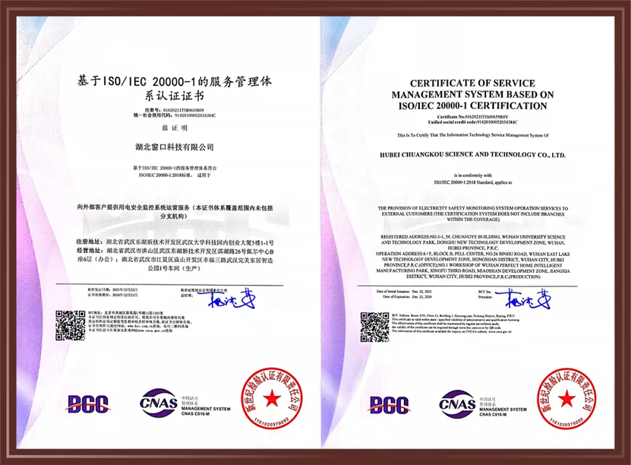 ▲基于ISO/IEC 20000-1的服務(wù)管理體系認(rèn)證證書