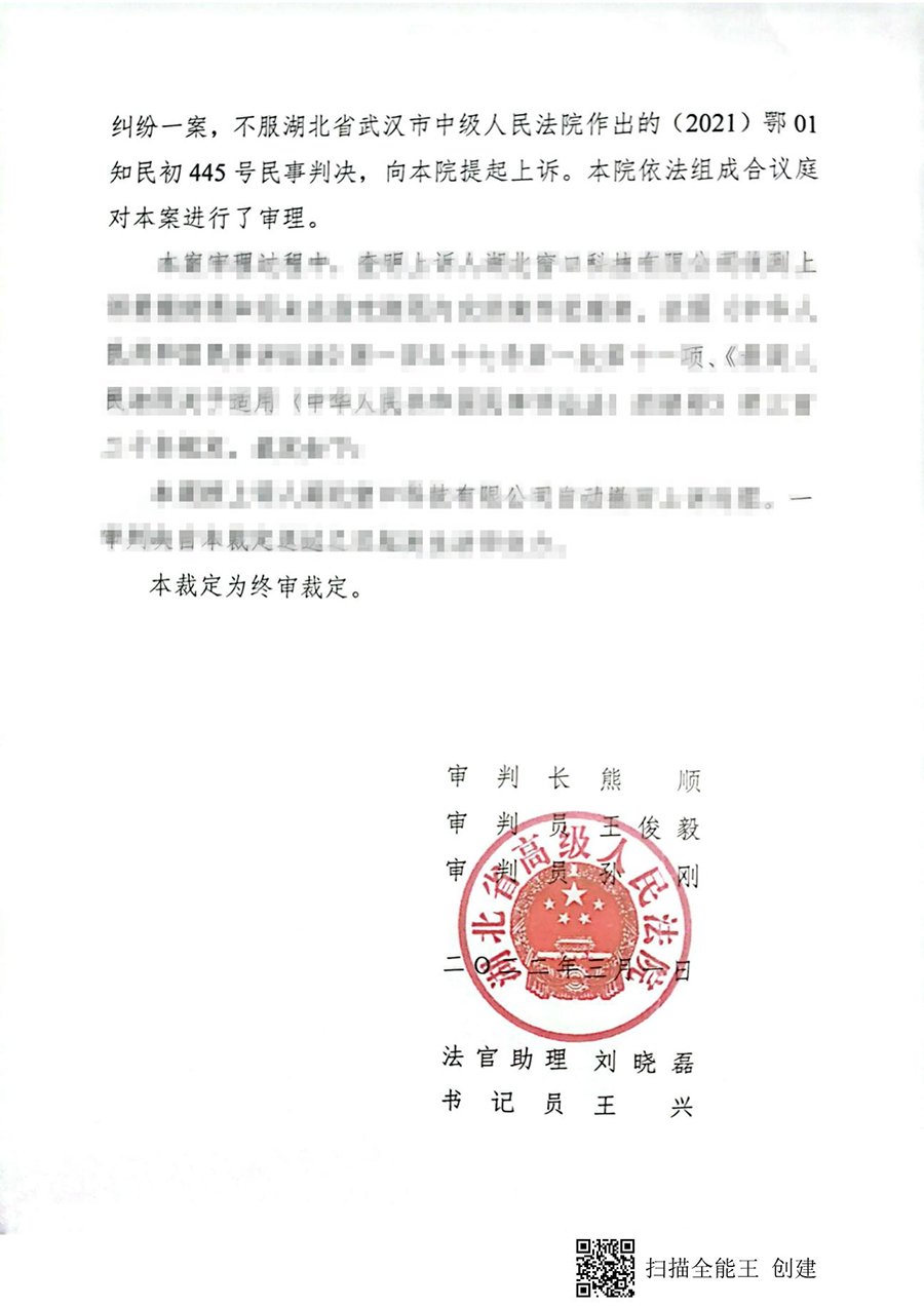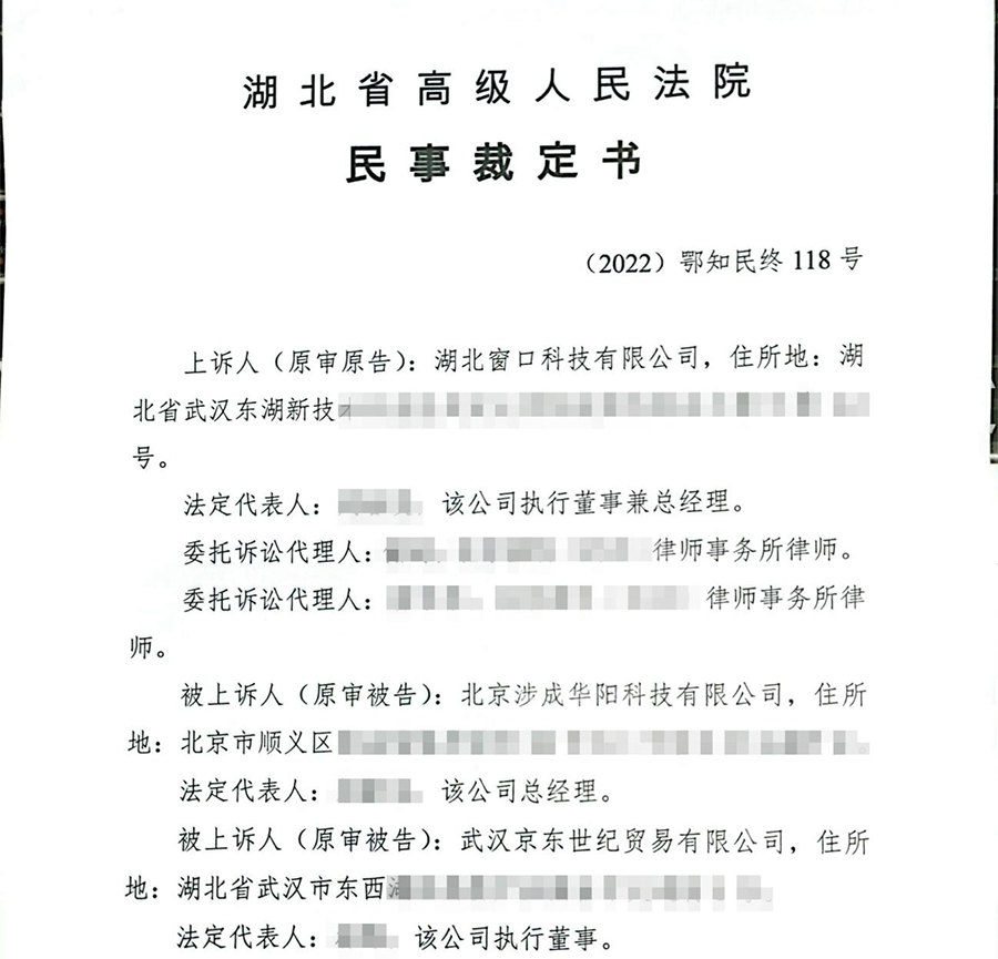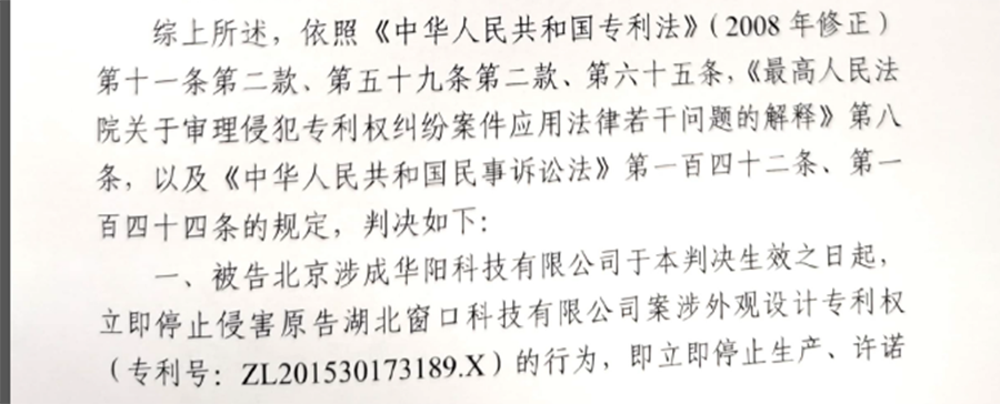 案件所處訴訟階段:本公告目前涉及一項訴訟,由湖北窗口科技有限公司(以下簡稱“窗口科技”)與北京涉成華陽科技有限公司(以下簡稱“涉成華陽”)關(guān)于“電源分理器”知識產(chǎn)權(quán)糾紛引起,法院裁定窗口科技勝訴,侵權(quán)方“涉成華陽”立即停止生產(chǎn)、制造、許諾銷售、銷售“電源分理器”產(chǎn)品,并賠償窗口科技相應(yīng)經(jīng)濟損失。