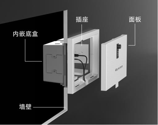 ② 固定底盒:根據(jù)需要,破拆孔,將86暗盒(最多8個(gè))鎖在底盒上;將底盒放入墻體,調(diào)平固定。