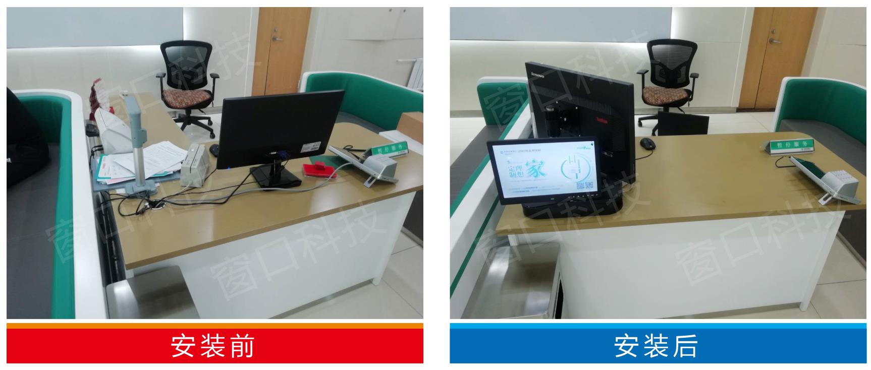 銀行柜臺的“現(xiàn)金業(yè)務(wù)”“非現(xiàn)金業(yè)務(wù)”標識、政務(wù)柜臺的“辦事指南”海報,以前要貼在桌面或立牌,現(xiàn)在直接集成到集線器上,桌面空間瞬間釋放;